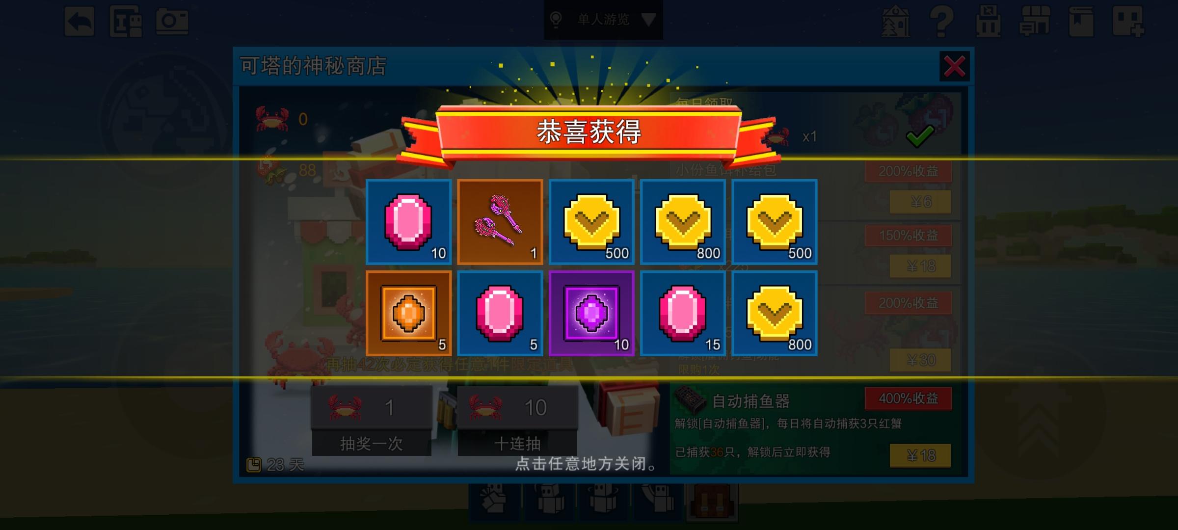 一万鱼饵可以出1500只螃蟹。[表情_灵光一闪] #像素射击爆率