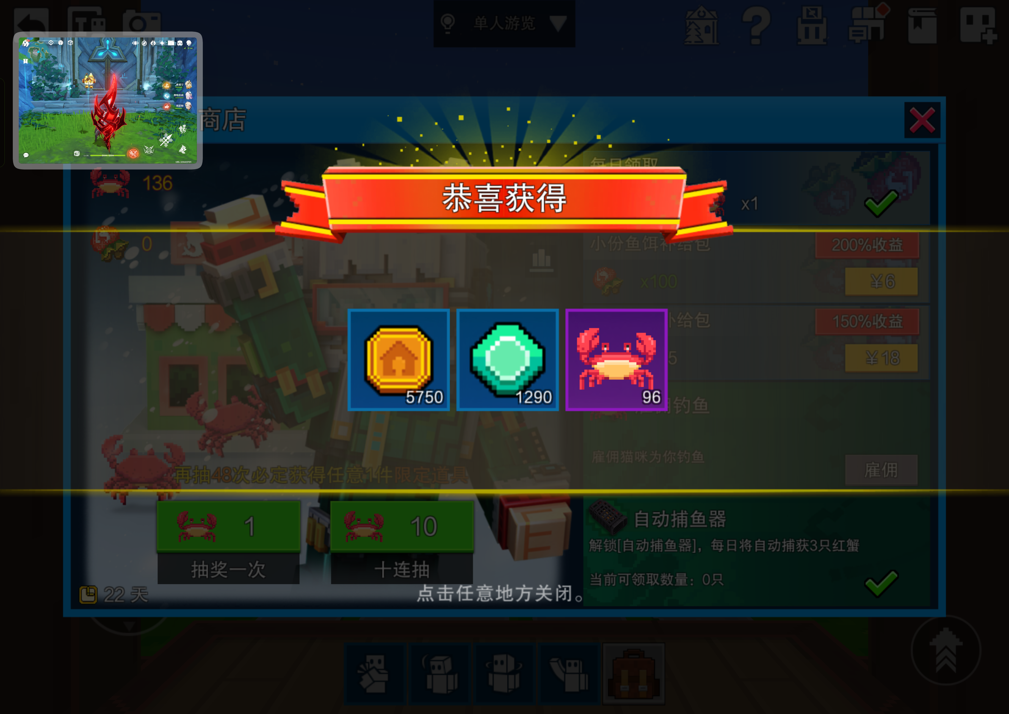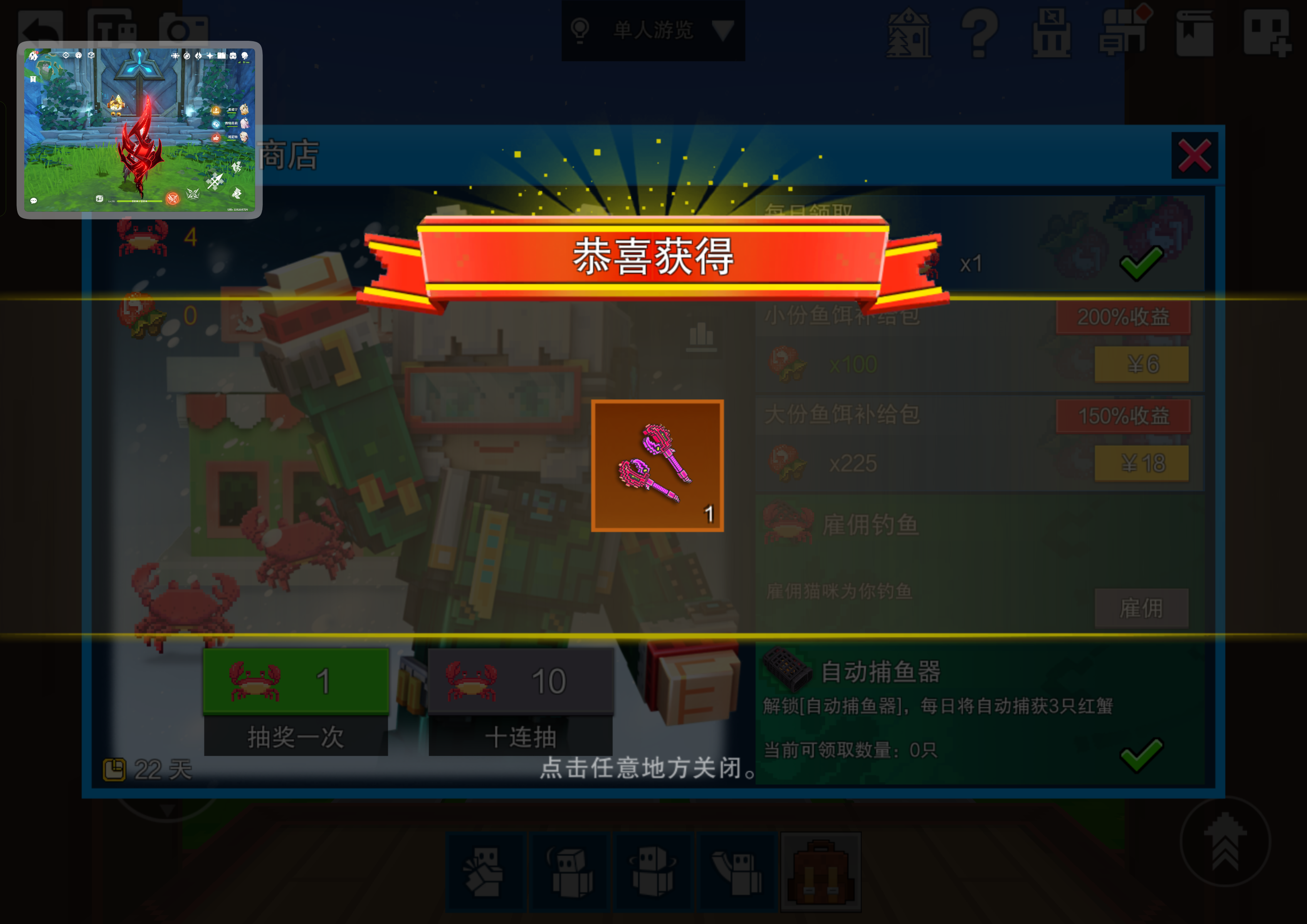 一万鱼饵可以出1500只螃蟹。[表情_灵光一闪] #像素射击爆率