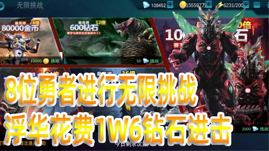 奥特曼传奇英雄:8位勇者组建无限军团花费1W6钻石挑战电弧贝利亚