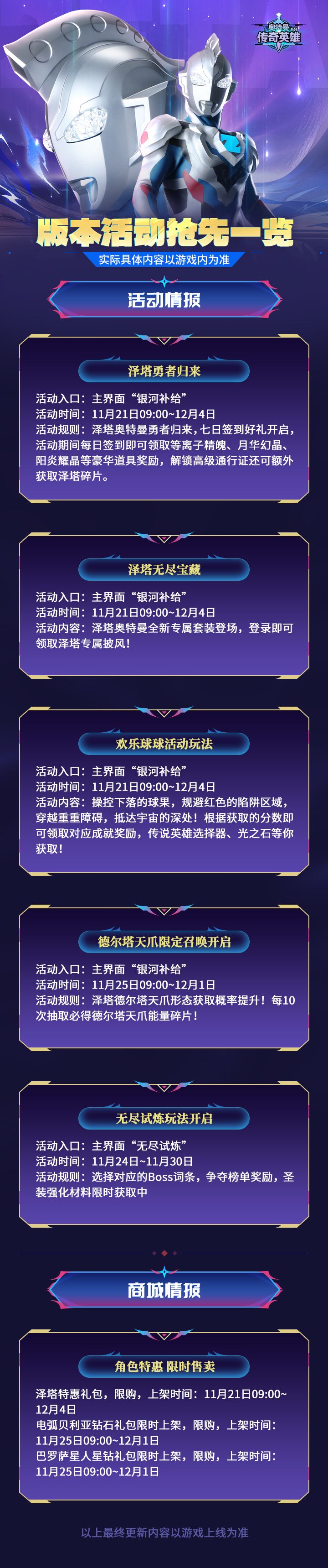 《奥特曼传奇英雄》本周活动现已上线,闪耀迪迦限时返场,闪耀赛罗限定奖池开启!
