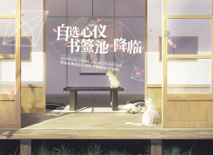 自选心仪书签池·再开!2月22日0点~28日24点,从给定范围的角色中组成书签池,和TA们一起参加猫猫节吧!心仪池只会有角色哦,毕竟在组成的时候没有丢进去其他道具嘛<( ̄︶ ̄)>当然,那个91抽保底机制依然有效哦!透过枝丫洒下的慵懒阳光,这一次,你在期待着谁呢?