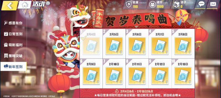 ★新春签到活动&限时任务来袭★这金灿灿的一片……∑(゚Д゚ノ)ノ零境使,你没有看错!春节签到送十连啦~!!(拿起扩音喇叭)2月4日0点~2月13日24点,每日登陆都可领取一张书签兑换券~错过无法补领,新春佳节记得每日登陆哦(<ゝω・)☆*咲久与麻久学会了舞狮!超可爱是不是!(期待夸奖的眼神)除了福利签到活动外,全新的中华街大冒险也即将启程!零境使,完成各种各样的大冒险,获取丰厚奖励