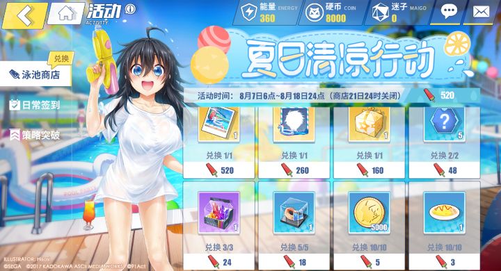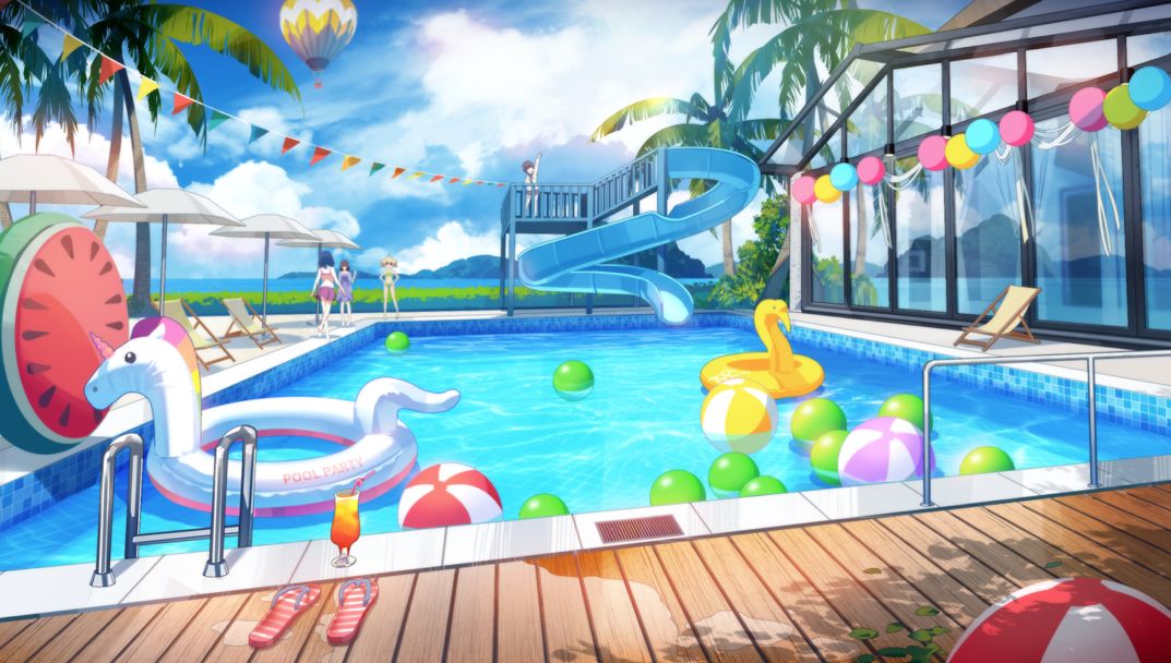 夏风吹拂,泳池水面泛起阵阵涟漪。日光倾泻,树影摇曳……在水边嬉戏的少女身姿,构成了美好的盛夏光景(*´∀`*)☆全新夏日活动来临~8月7日6点至8月18日24点期间,参与【剧情】关卡或【秘宝异闻录】即可收集「西瓜冰棒」~使用「西瓜冰棒」可在【活动】-【泳池商店】兑换限定泳池主界面场景、夏日头像框等多种多样的福利哦!٩( 'ω' )و