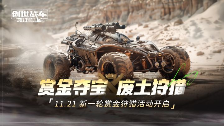 在《创世战车》移动版中,车库界面的右侧会竖向排列一系列的活动图标,通常按照其从上往下从右往左依次为商城、赛季(上图中未开启)、游戏内活动(如上图中第二列第一个"赏金狩猎")、储藏箱、特别优惠。
