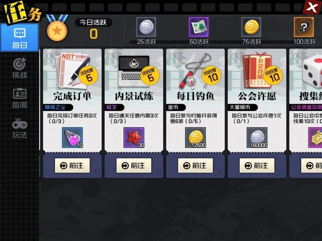 满级达成后该何去何从?熊猫酱为你答疑解惑! 每日任务记得做,成长路上不会错 当员工们达到50级后,每天上线要记得完成每日任务喔,每日任务不仅有“小目标”,更有着4个活跃度阶段奖励,活跃度奖励可是金币、银币、藏宝图主要获取途径之一。 除此之外还能获得绝世装备徽章和进阶许可,更有机会一发入魂获得随机250-290评分绝世装备 每日挑战下副本,绝世装备不用等 员工们每日可在津州港【陆仁嘉】和【程智恩】