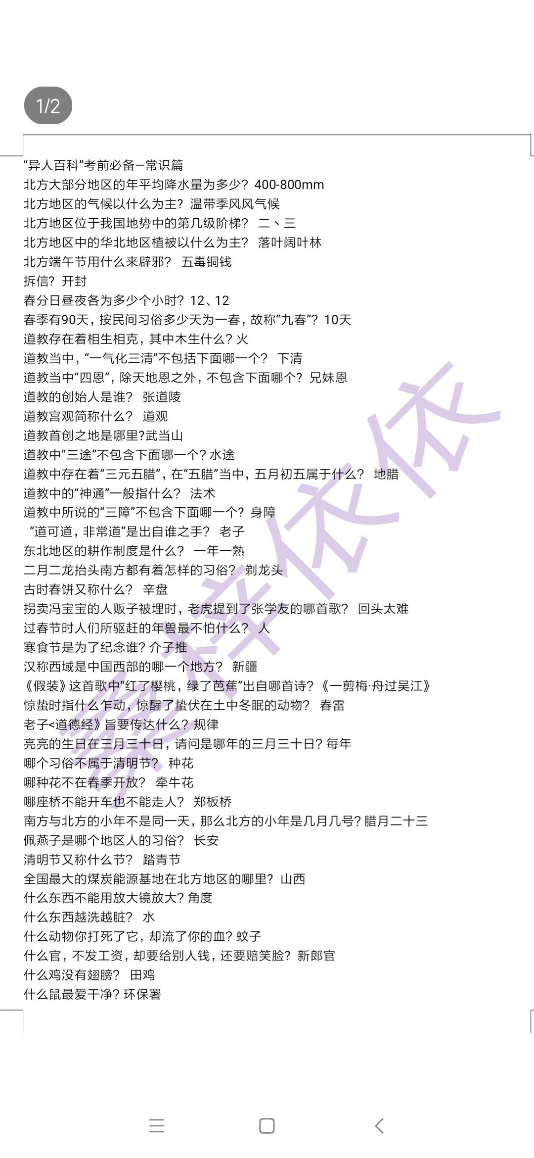 异人百科题库整理(持续更新)