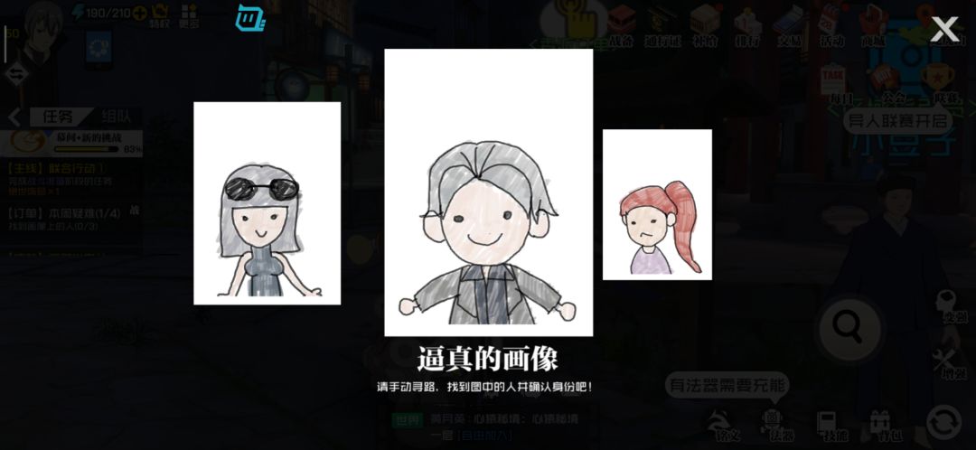 去天下会找是风沙燕,风星潼,圆儿。这个应该是最难的,请看下图,先去天下会。坐电梯到十层,找圆儿,在到40层找两兄妹。 津州港画像 天津卫小桃园,刘关张。刘放,关龄儿,张财,直接点界面右上角地图人物搜索自动寻路就行。 这三位也在津州港,徐三,徐四。陆仁嘉。很多人肯定不知道陆仁嘉是谁,到处找,其实他就在订单旁边。 这三位同样也在津州港,张楚岚,冯宝宝,刘妍妍。都能点地图寻路能找到的。 龙虎山画像,业