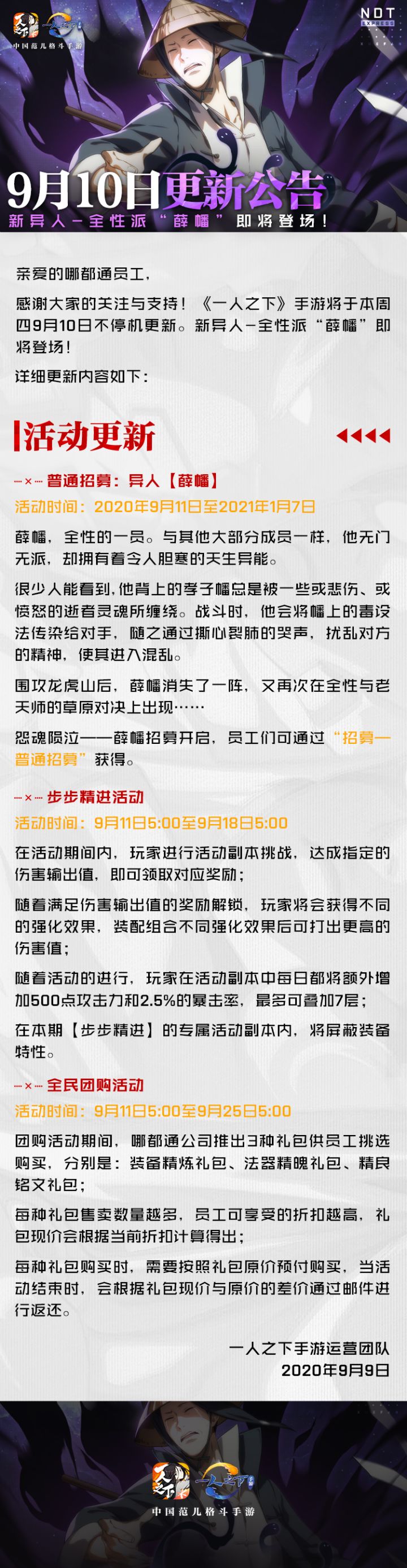 9月10日更新公告