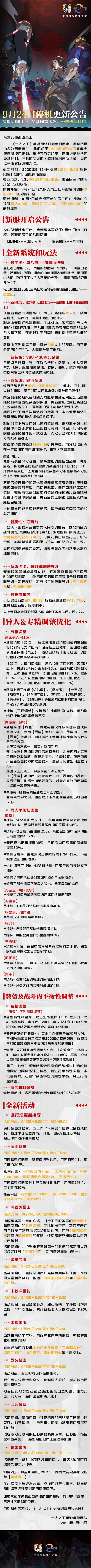9月24日停机更新公告