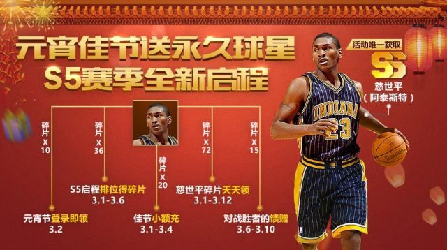 小伙伴们元宵节就快到了在这个阖家团圆的日子《最强NBA》专门为大家准备了一波豪华福利活动除了常见的游戏道具之外更有SS球星慈世平等你来拿快和小师妹一起看看元宵节活动吧! 元宵节的终极奖励,就是SS球星慈世平。慈世平原名罗恩·阿泰斯特,2003-04赛季,慈世平获得NBA年度最佳防守球员奖,并入选NBA全明星阵容。2009-10赛季,慈世平跟随湖人队获得NBA总冠军。 说到慈世平大家想到的肯定是著名