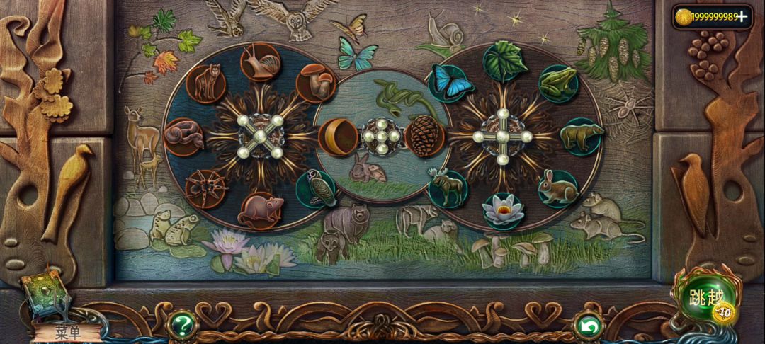 发现了没两个大圆盘周围有一圈图案,分别对应大圆里面每个小圆的,动物和植物,对应上位置就行啦