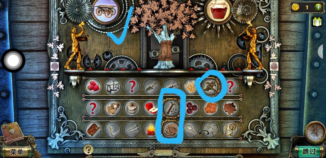 就是能量有点烦。 有问题趁我记得还可问。 最后那块是 布子沾水擦脏东西 然后用纸垫着 用锥子扎洞洞,会出来钥匙, 把两个壳的都用钥匙打开, 收集零件 老鼠会给你那个把儿, 装一起,打开门, 用投标扎缩小药水,把那个左边的大虫虫缩小就结束了。