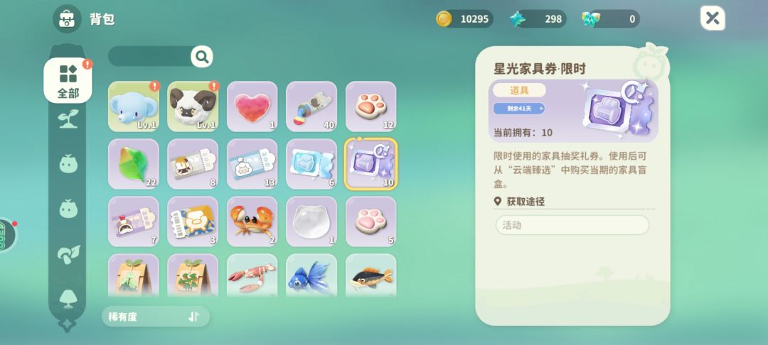 抽奖券问题,不管是限时还是不限时都会出现在背包,限时的能看到时间倒计时,对于这种一个池子四十多天或者一个月的情况,不限时道具应该下一期也是能用的,因为也就三个池子,时装池子,星光家具池子,普通池子,普通和星光家具应该是固定了的,时装池子可能会变。 就算会变,道具应该也会回收变成晶石,会有邮件通知的,正常游戏都这样。 鱼类特征问题,大地图点击鱼图标就会显示追踪界面,鱼是分白天黑夜的,听游戏里人说,白