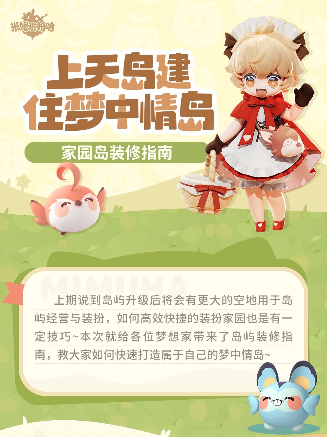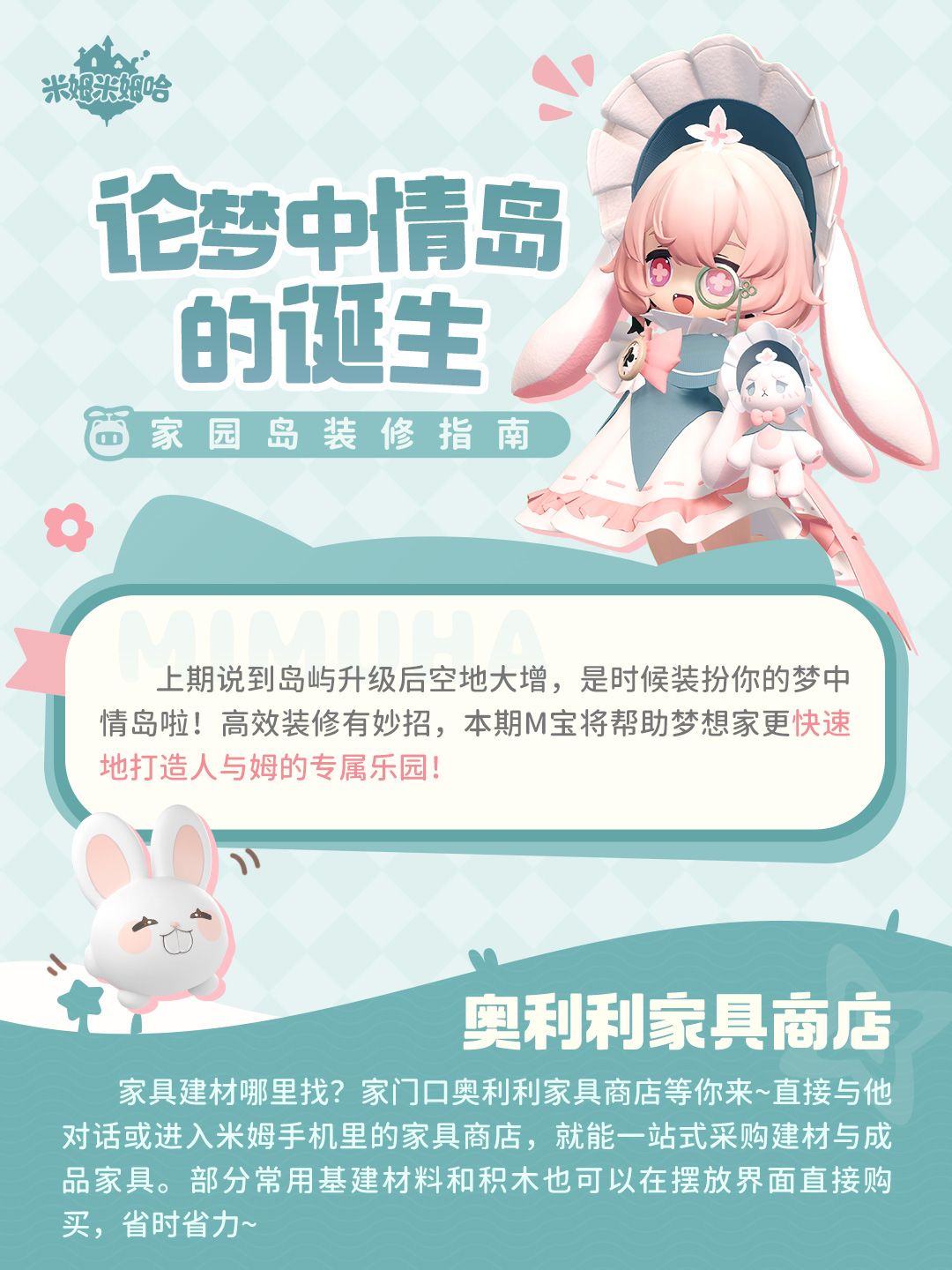 高效装修有妙招,岛建攻略它来啦它来啦! 从建材获取到成品实操,M宝带你手拿把掐~梦想家们请多多关心吧! == 联系我们 == 想了解更多游戏资讯或联系官方,欢迎通过以下方式联系我们! 官方网站:@米姆米姆哈 小红书:@米姆米姆哈 微博:@米姆米姆哈 官方公众号:搜索【米姆米姆哈】