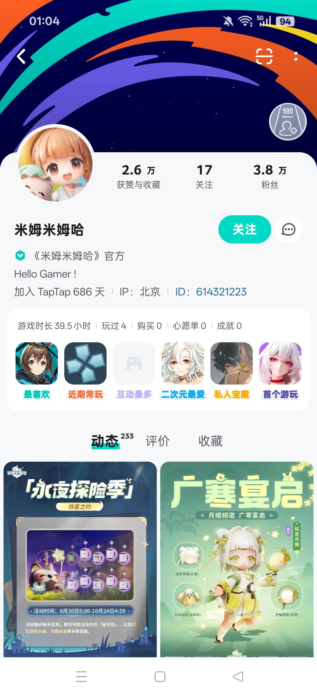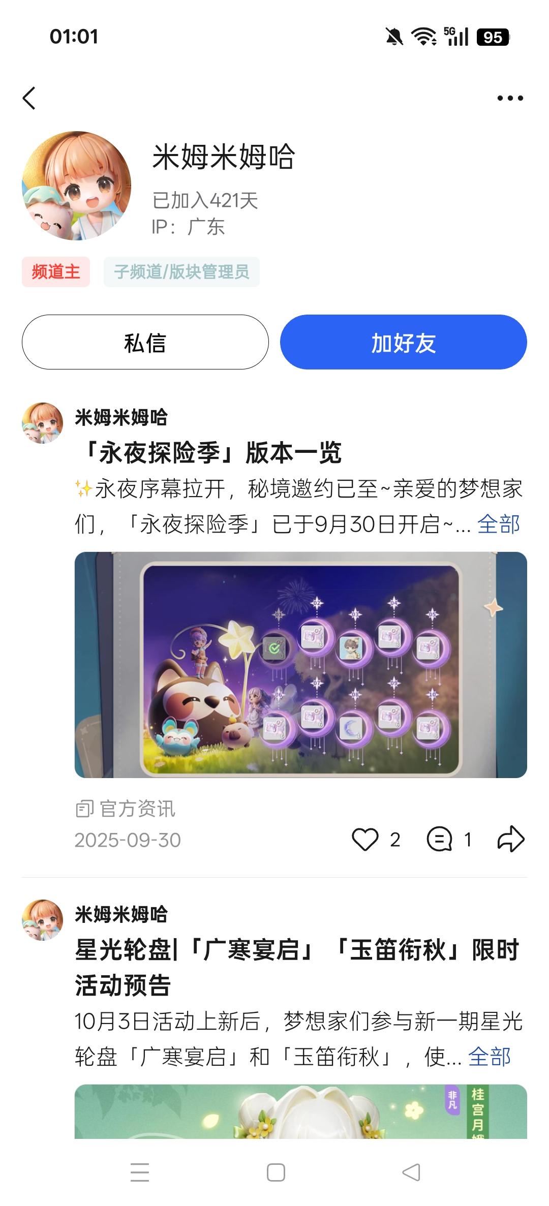 今日米姆官号iptap:北京b站:山东小红书:无(30天内不评论不发文会消失)抖音:无(原因同上)腾讯频道:广东快手:上海已知:1.制作组曾属上海;2.发行商属广东;3.外包头号群管在山东;4.tap的ip在北京很久了米姆走到了这步,五味杂陈,测试的欢乐和开服的人山人海还历历在目……最后入坑提示:截止目前,一共54级,每天做满任务,需要59天即可满级