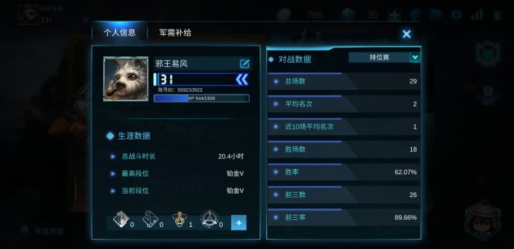 首先说明一下,我是从S2玩的赤潮,到现在开始玩自走棋,在TapTap的论坛,我也算个老人了(不服等级来辩!)就我个人而言,上手还是挺快的,这个游戏的机制挺好,没有氪金压制,欧皇全靠一张脸,平民就得靠策略,至于非酋。。。能不能出个十三幺😂。闲话不多说,下面开始讲讲我的攻略。先看战绩吧,截止到昨天晚上。因为打一局时间确实有点长,所以上榜大神咱比不了,而且经验也确实不足,所以我的攻略也就是给萌新一些