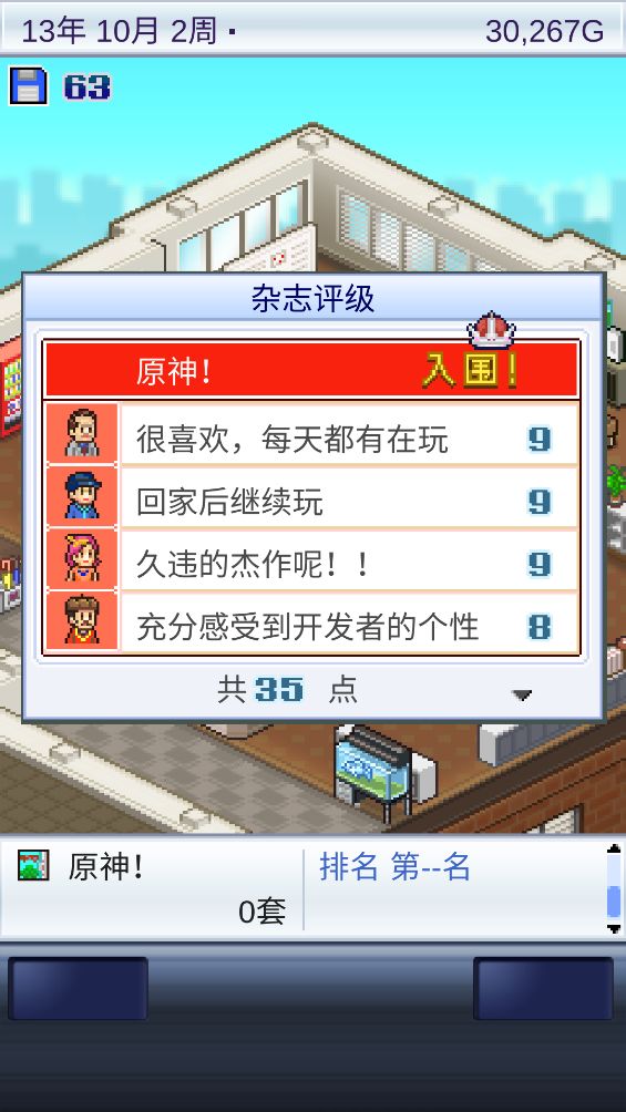 道一三清之名 : 七八年前的时候还没有攻略这种东西,开罗系列随便下载,我基本完了个遍,这个系列就是凭个人喜好来经营,也能经营的很顺心,上手简单迅速。这个游戏重点在于,只要把职员升级就是啦,选择能力,升级、开发,上手快,画面独具特色,经营有道能获得很多新奇的东西,这就是开罗游戏令人着迷的原因。