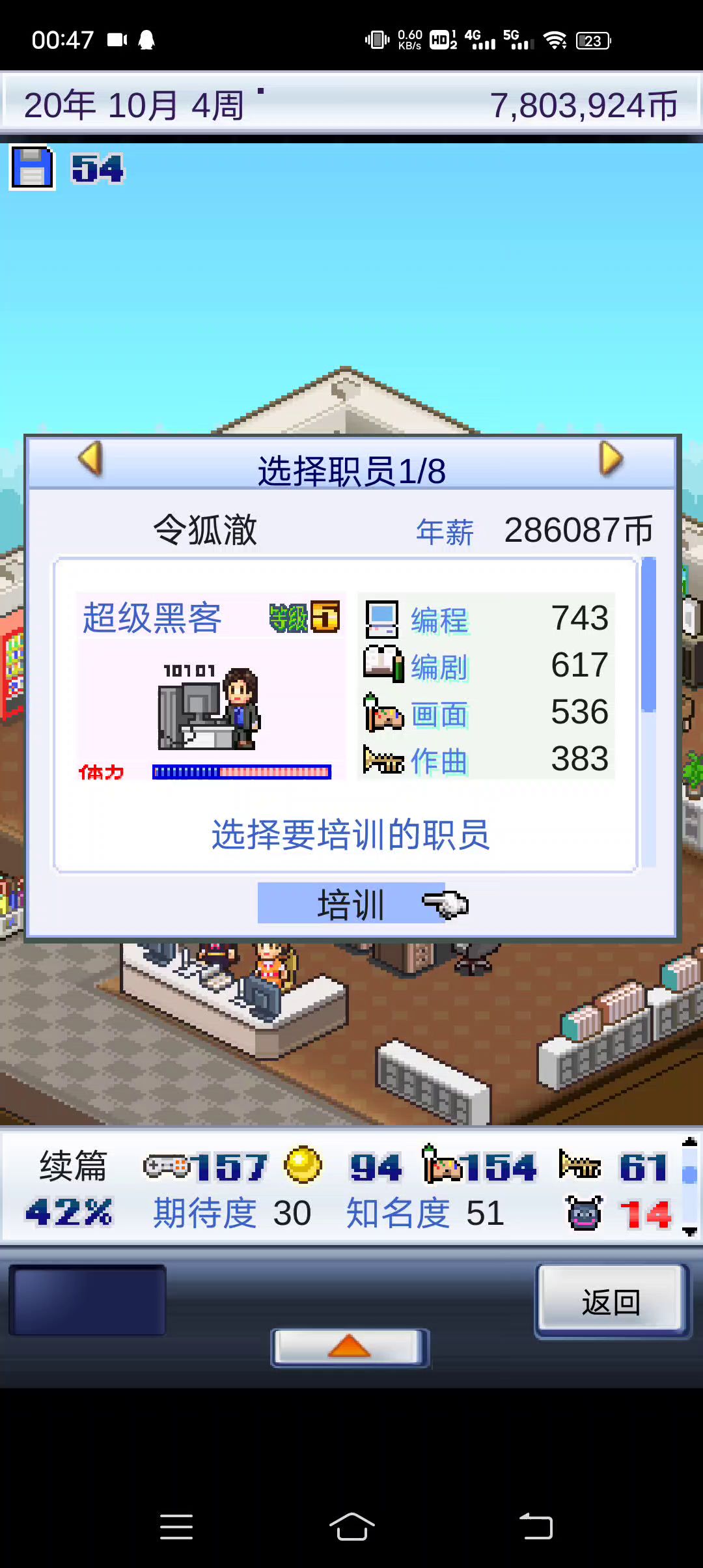 就是不停的打游戏机,有几率会加属性,要把八个员工刷满,工程量极大,我只刷出四个满属性员工(造出来六工程师那个主机就没动力了)