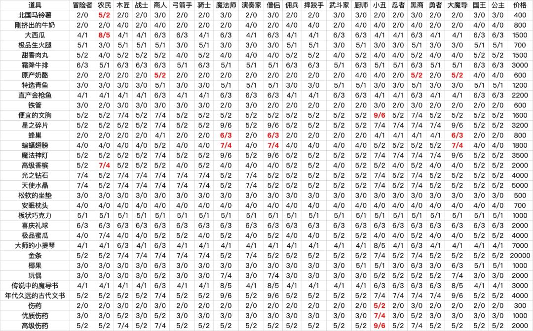 前言 在本游戏里,人气是一个重要因素,关系到许多方面。人物的到访,事件的触发,职业的进阶,也是最后的评分中重要的一环。 人气的增长有三大途径,完成任务,举办活动,人物的满意度增加。这其中人物满意度是最主要的来源,而刷满意度最主要的方法就是送礼。 游戏中所有物品都可以作为礼物赠送,送礼后会提升人物满意度2~9点,勤奋度0~6点,数值只跟职业有关。如果想要速通五星,在前期资源非常有限的情况下,性价比尤