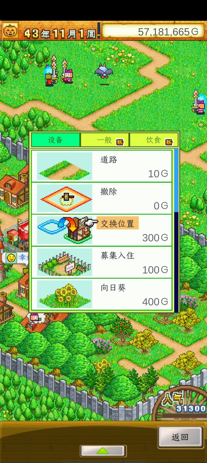 再来说说村落布局:沿着中路,从上到下开路,把旅馆放在最上面的左侧或者右侧,这样可以让冒险者快速回血。旁边建上武器店、防具店、饰品店,会摆景物的可以适当摆一些景物增加使用费。旅馆对面放餐馆、剑术道场,会摆景物的可以适当摆一些增加使用费。再下面一些放冒险者的居住屋。