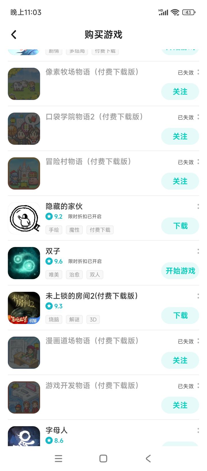 我 TapTap 出来的开罗游戏都购买了,跟我说那10个我买不起,我没有全游戏