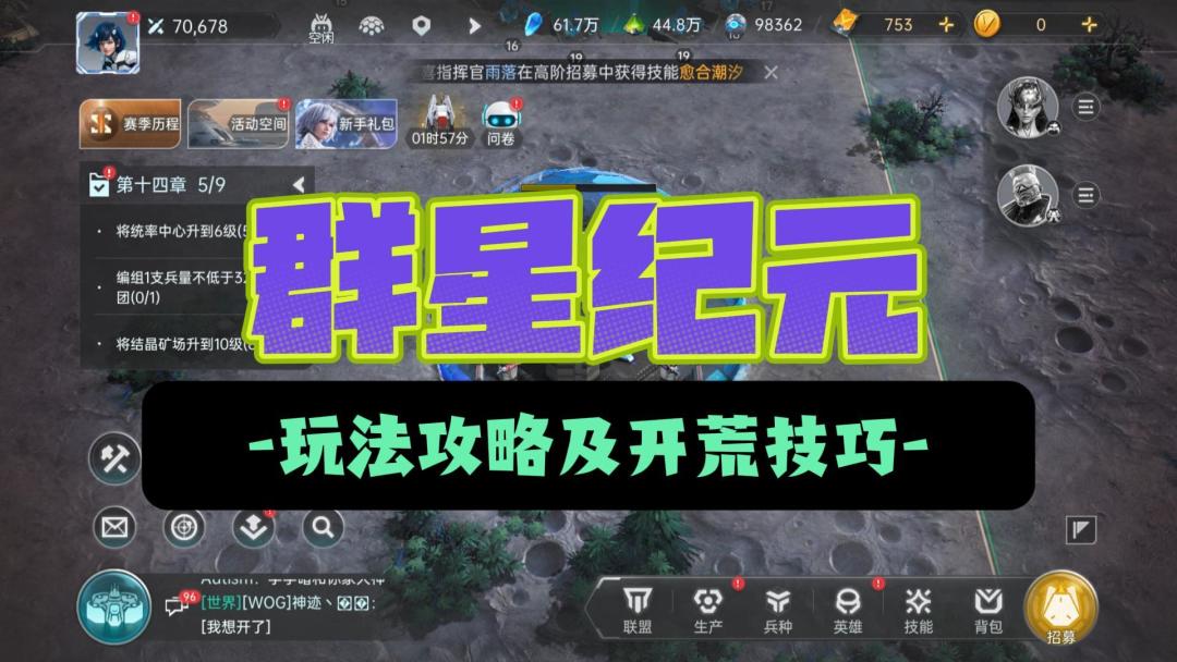 📢各位星际指挥官请注意!刚收到联盟指挥部最新加密战报——银河系生存指南V2.0正式解密!本台记者潜入前线指挥部,为各位带来这份价值百万信用点的《开荒期黄金任务清单》,手把手教你弯道超车! 01主线任务推进 主线任务推进 矿点采集: 优先采集高等级的矿点,跟随主线提升建筑等级,采集点数不够可以使用动员令补充(来源:星球探索) 清理帝国军: 帝国军单刷到18级,18级后可以召集盟友一起攻打,一般联盟会