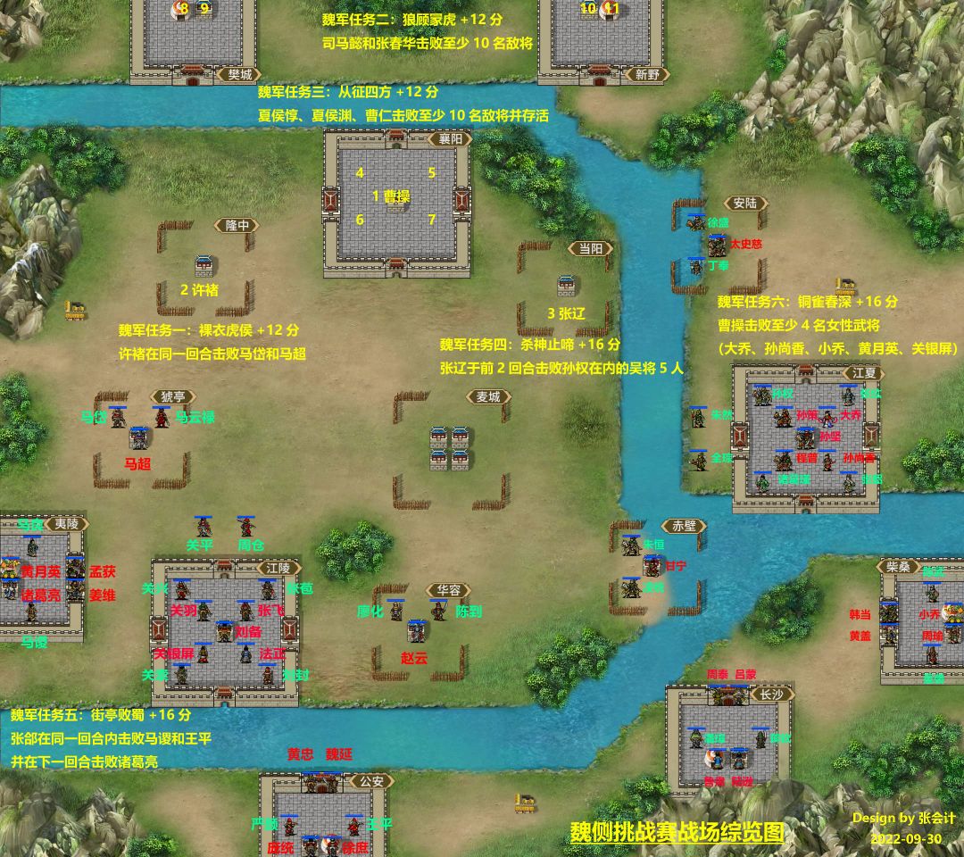 前言 大家好,之前给大家出了一篇开局送死摆烂拿低保的攻略,那是服务纯小白玩家的,对于有一定资源的玩家来说,冲击600分可能还是很难,但400分还是有希望的。本期就带来魏线400分攻略 攻略正文 1.魏线出站位和任务如图,作者张会计 2.出战角色 【1】曹操 专属兵种+携带霸刀(可选饕餮牙,关羽魂等) 【2】司马懿 专属兵种+文物第一+专属武器+勋章+3诸葛(若勋章15级可2诸葛;或带诸葛蓝色衣服1