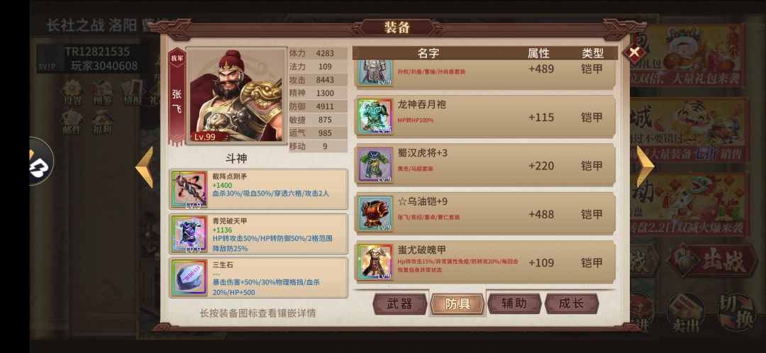 我的得意武将-张飞 三生石加截阵点刚矛,爆伤穿六,清兵神速。 TR12821535 id:3040608