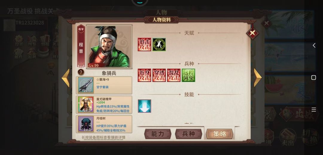 #新手引导#不充值玩家武将培养推荐 程普,零氪金,买不起专属。程普转职成象骑兵后,因为本身有追击,所以效果非常好,为主要辅助。 装配霸刀,破甲,可以保证固定输出伤害,并且每回合恢复状态。一人单挑东吴篇修罗难度无压力。