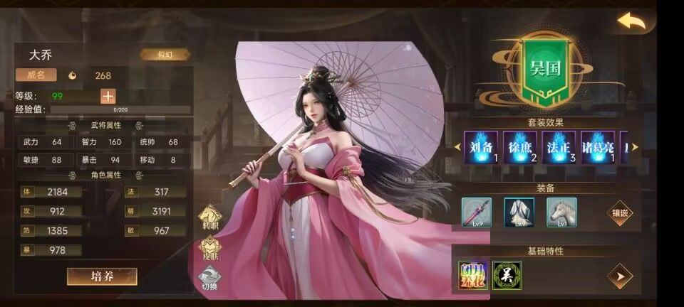 此攻略只适合十万定制玩家,图一左慈给破秽、诸葛果给破影、全军加移动、加终伤三个特技、甑姬给爆伤、冲锋两个特技。图三第二回合蒸姬给动力过载,大乔给两个传送特技。带入到图五。前期铺垫好图五就没什么难度。黄忠:清明弓(两佛尘玉)灵珠换黄月英武器灵珠,金圣衣(金圣衣玉加端午安康玉),金月英马(两端午安康玉) #三国戏英杰传 #游戏攻略