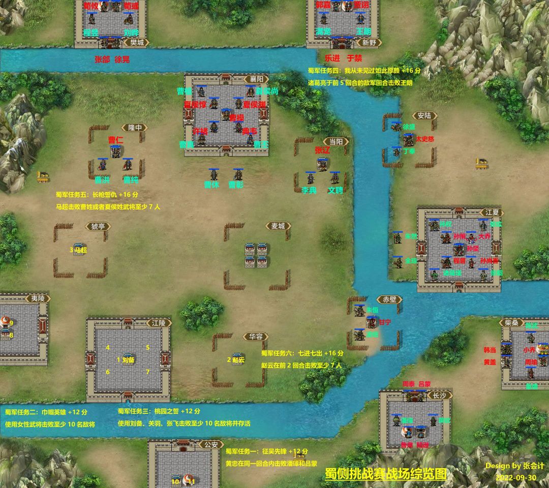 作者:葫芦小七 前言:先来分析一下战场的局势,蜀侧一共有6个任务,各个难度极高,作为萌新,没有皮肤,没有增伤套,没有赵云、马超专属的情况下,想要完成任务,完全不可能。所以该放弃就要学会放弃。除了有黄月英的玩家想做下女性杀十将的任务外,其他任务可以无视了。 本攻略针对的就是不做任何任务,纯肝,纯杀。大佬想要拿高分的也可以无视本攻略了。白嫖党比较费时间,建议1天时间搞一关。 本人简单、挑战难度都打了