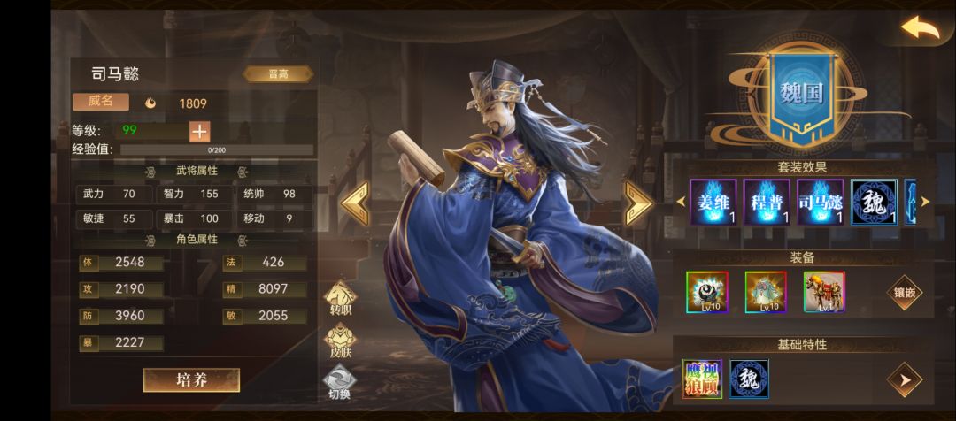 国栋作为名仕英杰关卡的前置,因为第五关的每回合必须被动回合杀至少11个人,难住了很多玩家。导致后续关卡无法体验。当然对高氪玩家来说又一点不难,所以今天来试试做个没有运营套(应龙,天子,万庆那些),没有血书sv的国栋5攻略。 首先来看看几位出场人物的装备配置,5个酱油,1个诸葛输出。 1.飞将姜维(嘲讽肉) 蓝色铁脊蛇矛自带中毒攻击,给中毒阈值的敌军挂状态的,金丝甲全屏反击,飞将先手,稻草人嘲讽,3