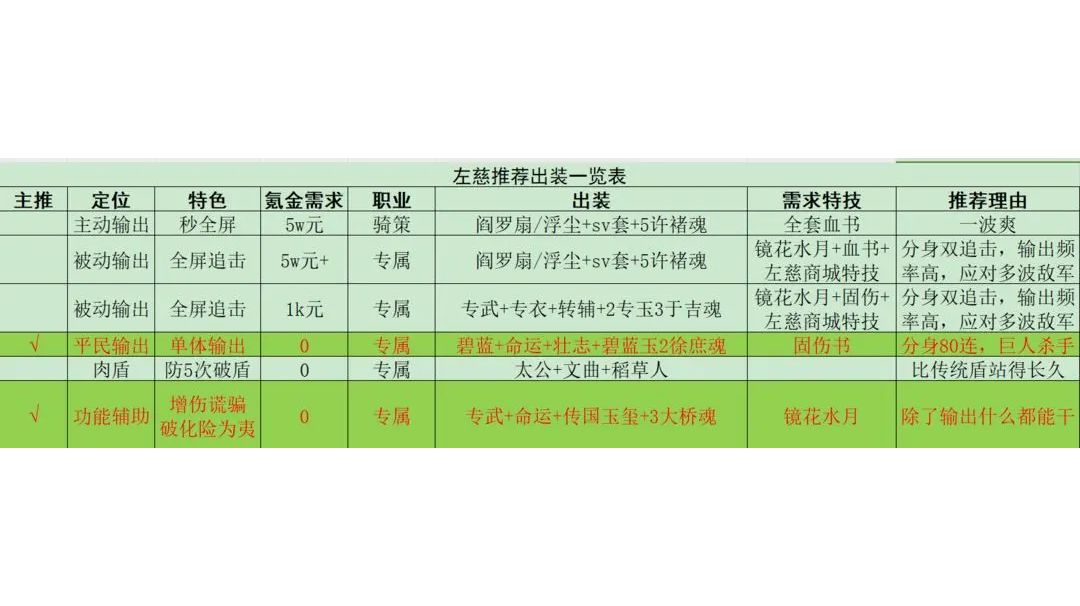 【左慈配装攻略】素有烟霞志,共息水云身——各阶层左慈配装探究
