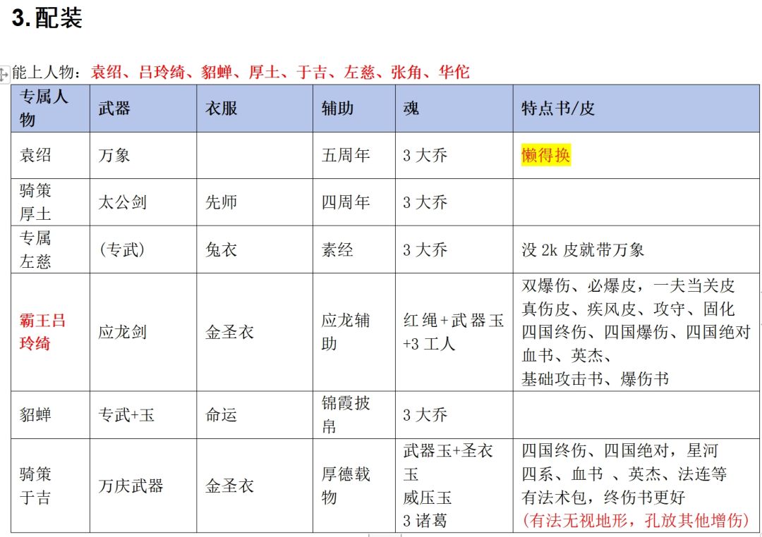一、前言 大家好,金装已经更新一段时间了 还有好多朋友没有升级出一堆资源,原来是升级材料不够的缘故,可见周常还是很有必要打的喔。 虽然前期已经出过豪杰之姿的攻略,但只是一个大概思路,很多朋友反映不够细致,不知道怎么抄。那么这期就给大家介绍一个经飞鹤反复测试后的最低配攻略,与大家一起讨论~ 省流:最低需求——大乔和司马懿的专属 二、人物配置 (一)输出主力【可选:大象李明 或 专属马云禄】 ⭐出站位