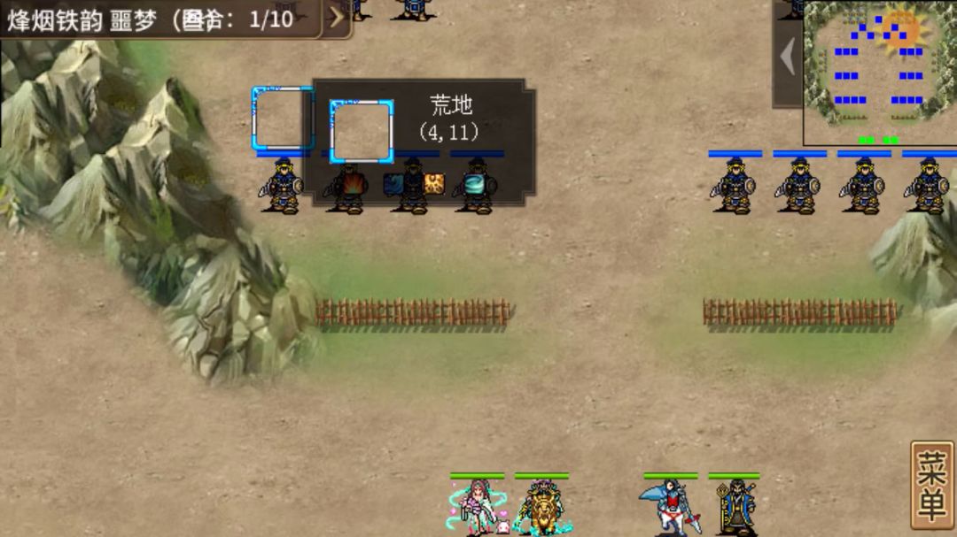 感谢来自玩家“漆黑一团”的攻略整理。 过关奖励:厚土印,用来升级周年庆辅助,获得必中必闪、回归等实用技能。 配置:霸刀猛兽兵典韦、无伤嘲讽肉、骑策若干、妖术师(用好假情报混乱敌军)、天师(九宫格回复状态,带双飞翼也可以) 无伤嘲讽需要具备的要素:嘲讽、原力盾、减伤 过关流程图:(回合数99很充沛) 开局敌方boss不出现,只有3块不同区域(台阶、荒地、沼泽)的敌军,统统和小草分别在右上角和右下角。