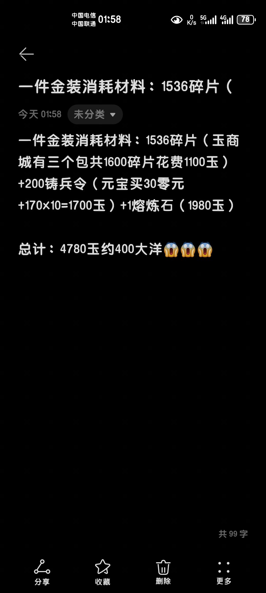 直接看图吧,合不起根本合不起(附材料包来源,玉商城的碎片和熔炼石应该是月重置,铸兵令不限量,在有节制的氪金的前提下,一个月只能合一件,没节制的富佬可以在充值栏的限购页面里直接用软妹币买用)最后一张吕布金武属性,下面还有没截到的,杀一个加8%攻击叠7次,强是真的强,贵也是真的贵[表情_捂脸哭][表情_捂脸哭][表情_捂脸哭] 理性消费,理性消费