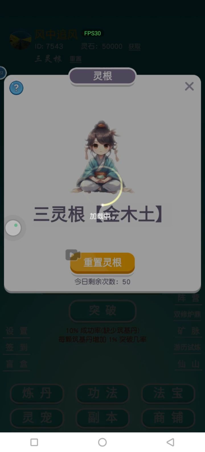 玩半小时看半小时广告。还没有天灵根。