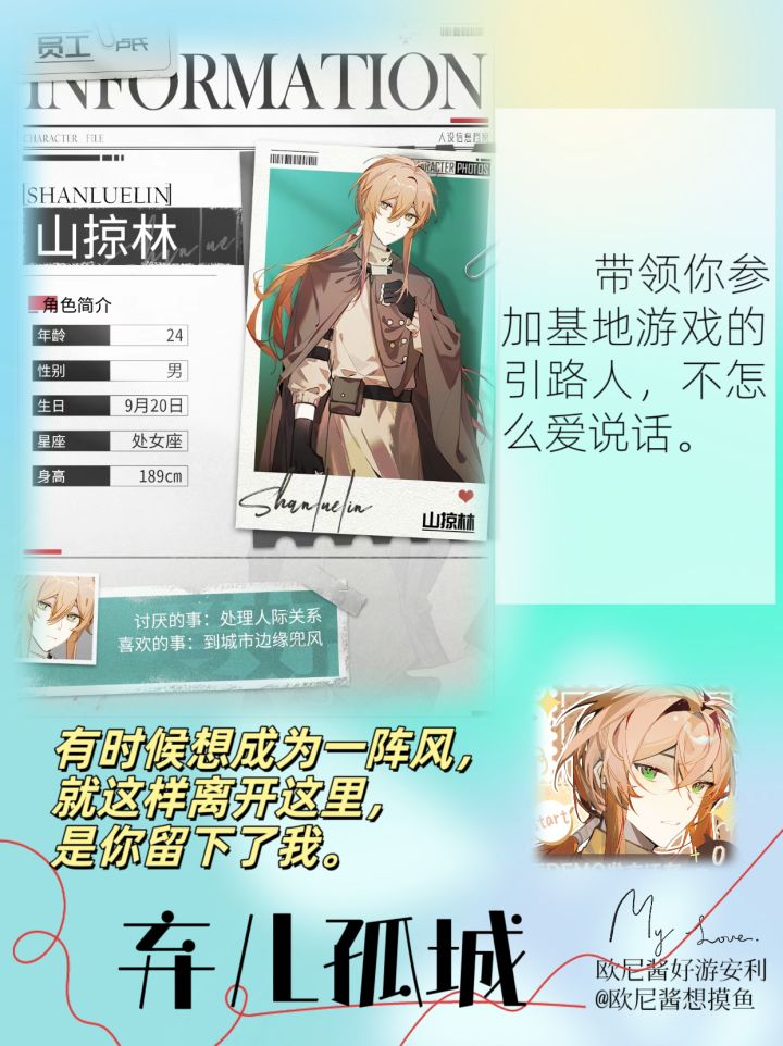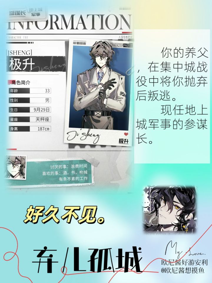 🌠游戏名称🔸《弃儿孤城》🌠关键词🔸乙女|大女主|末世|剧情向|恋爱🌙🌒🌓🌔🌕🌕🌔🌓🌒🌙🔶可攻略六名性格各异的男主🔹末世题材超带感❗🔹六位男主太戳我了❕❕高冷养父极升💘还有白切黑的美人老板❗❗🔶精美的立绘和CG➕多种选择和结局超过十五个游戏结局。🔷游戏背景:🔸2386年,地球进入“冰核时代”,人类在最后的净土上建立了集中城。🔸政府被权贵架空,地上势力集团对下层居民实行压迫与剥削