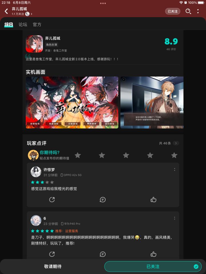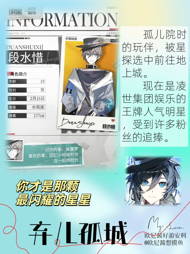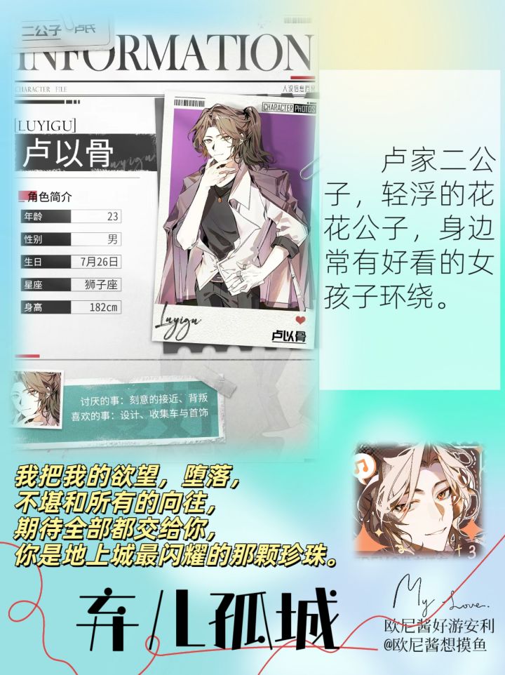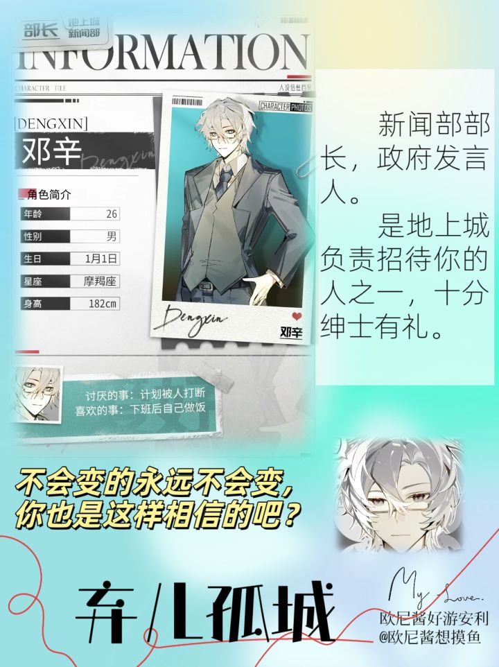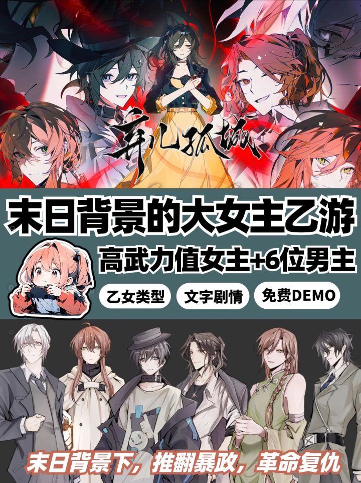🩵弃儿孤城🩵steam✔️乙女/视觉小说/恋爱模拟/剧情🩵游戏概括末世题材的乙女游戏,最后的净土分成了耀眼的“地上城”和阴暗腐烂的“地下城”...这个背景描述很像一些影视题材常见的设定,充斥着混乱和欲望。✔️游戏特点6名可攻略性男性角色,其中一个是女装大佬;立绘算精美;数张极具故事感的CG,沉浸式游戏+1;多于十五个游戏结局,一切在于你的选择;🩵游戏评价浅浅评价一下de
