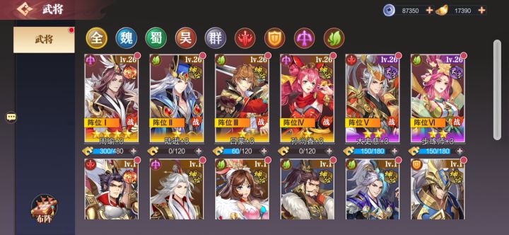 阵容大多数主升周瑜或者吕布,战宠的战斗力也可以