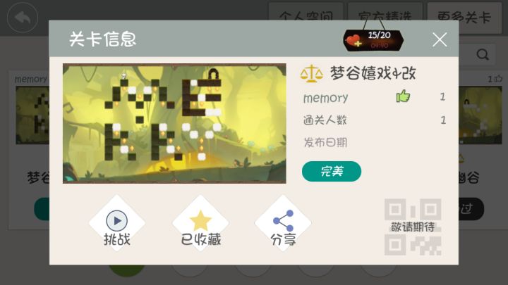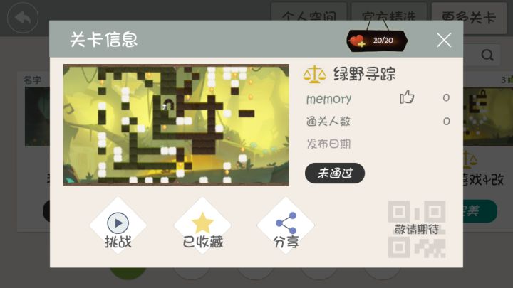 制作者大大能不能添加上传后重命名以及修改/删除关卡的设定/(ㄒoㄒ)/~~比如Chapter 2,本来设计只用一个符文,因为本人的疏漏,发现可以不用符文也能通过(尴尬),如果能修改/删除就好了。每次测试完后都会下意识点上传,然后发现还没取个好听的名字,但这时已经不能改名了(´⌒`。)各位搜Chiro就能找到我啦😏