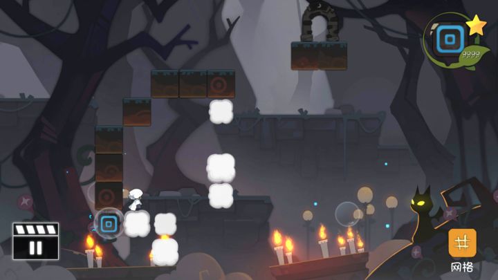 如图,当你把符放在透明方块下方后,你再跳过去踩你就会封在里面,然后只有重来。另外,这关怎么过啊😂