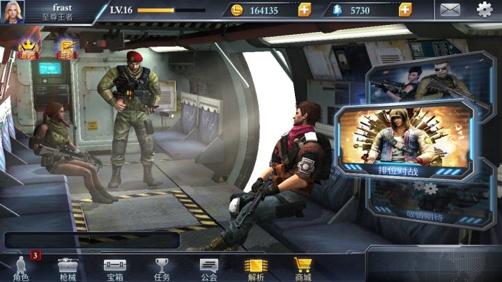 作为一只刚刚入手前线冲突的萌新,首先的就是顺着指导完成新手攻略。当指引结束后,你会获得一支由杰森,克莱尔,布朗森组成的特战小队。其中杰森是一位炸弹专家,作为中坚力量突击手,拥有十分出众的技能手雷,及爆破精通技能。这时你可以选择继续闯关挑战,更可以与同水平的玩家进行时时对战,赢得胜利,获得经验以及对战胜利宝箱。6级时将解锁枪械系统,你可以在其中升级自己的枪支,个性化的搭配配件。而7级时开放的天梯
