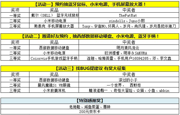 亲爱的冒险家们,《天空战歌》安卓测试已经结束,特别感谢诸位游戏热爱者的支持,以及为我们提供的宝贵建议,接下来的日子里,我们会再接再厉,争取带来让大家更为满意的游戏。在测试期间,我们开启了多个活动,现公布中奖者名单。温馨提示:请下面中奖的幸运玩家于3个工作日内在本帖下方回复QQ号,我们将会主动联系您获取邮寄地址安排发奖。要是过时的话,我们会视为自动放弃的哦。