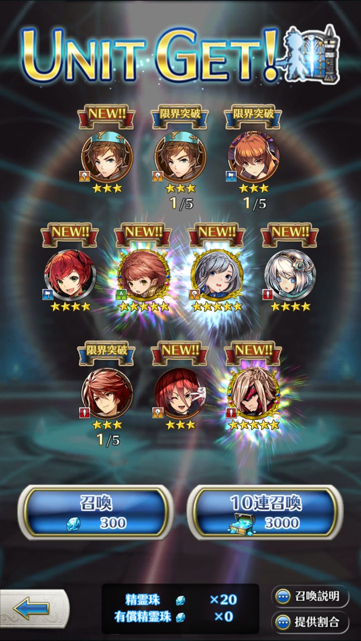 这是我两次十连之后的注:如果遇到进召唤闪退的,再等待进入召唤七八秒后还没出现图标的,立刻切换主页面再按回召唤即可。