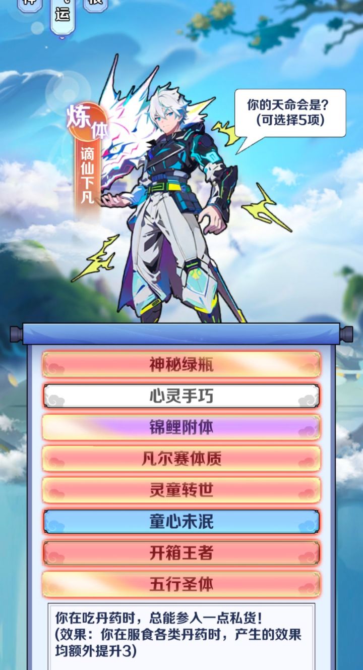 在选灵根时,依次#游戏日常 点击金木水火土即可触发