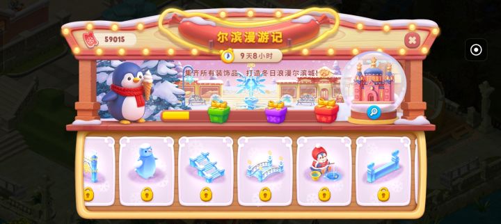 顺便一提 我真的很喜欢哈尔滨这个活动 真的真的特别喜欢企鹅 可是我的瀑布没有装完买不了 希望官方可以不限制没解锁区域物品的购买 到时候解锁了再装修上 不然过几天开学了就又错过了 而且老是卡关 想赶紧装完都不行 这几天都不知道买了多少无限礼包了