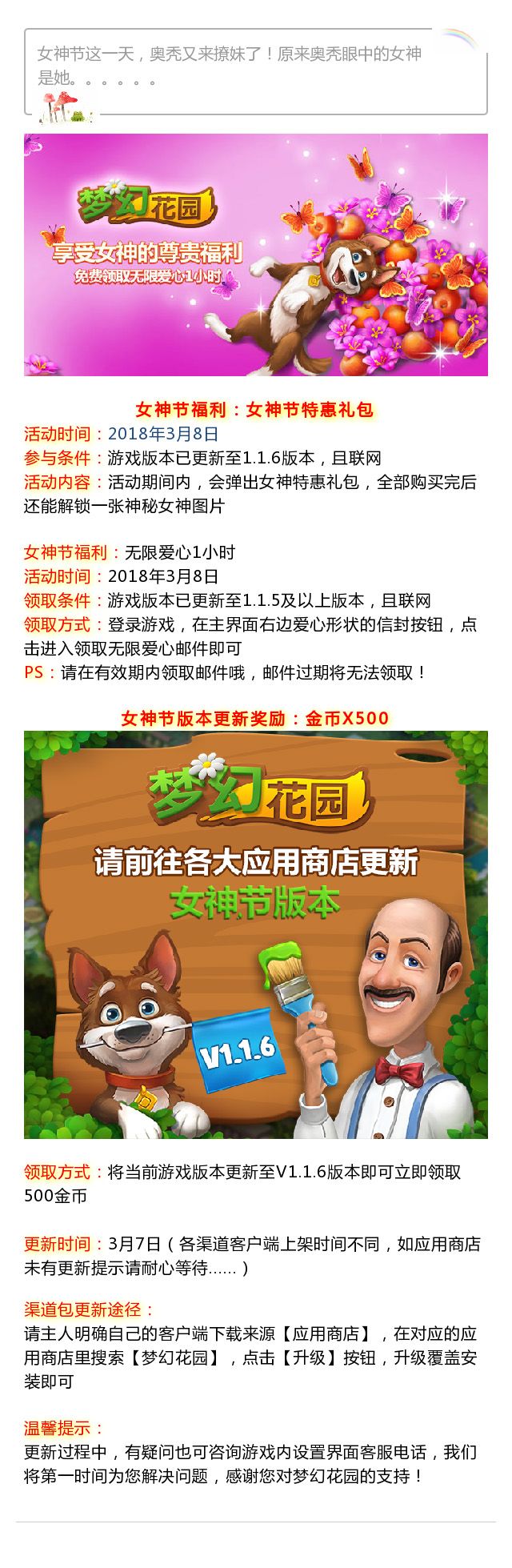 【活动时间】 2018年1月30日10点—2月4日23点59分 【活动玩法】 在本帖中回复,用一句话证明你玩过梦幻花园 【回帖格式】 一句话+你的用户ID 参考:奥斯汀是个秃头管家! ID:123456789 P.S:游戏礼包将直接发到游戏邮箱中,所以一定要附上游戏ID噢! 发奖小提示:请确认用户ID无误,由于用户ID错误导致的奖励未成功发放,将不予补发 【活动奖励】 1.游戏礼包X1(有效回复中