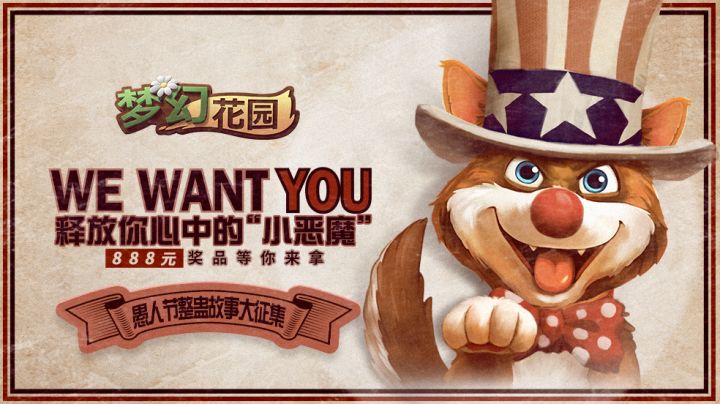 本秃最喜欢的节日——愚人节!马上就要到了!围观群众:哪里是马上???明明还有半个月!秃:不!本秃要为愚人节提早做规划!我需要最好的愚人节的整蛊点子!这样就可以在愚人节玩的开心啦!所以!来吧!We want U!释放你心中的小恶魔,加入我们这次的“愚人节整蛊故事大征集”活动!参赛者将有机会角逐最后的价值888元的大奖!【活动时间】3月18日-3月25日 【活动形式】在本帖下方评