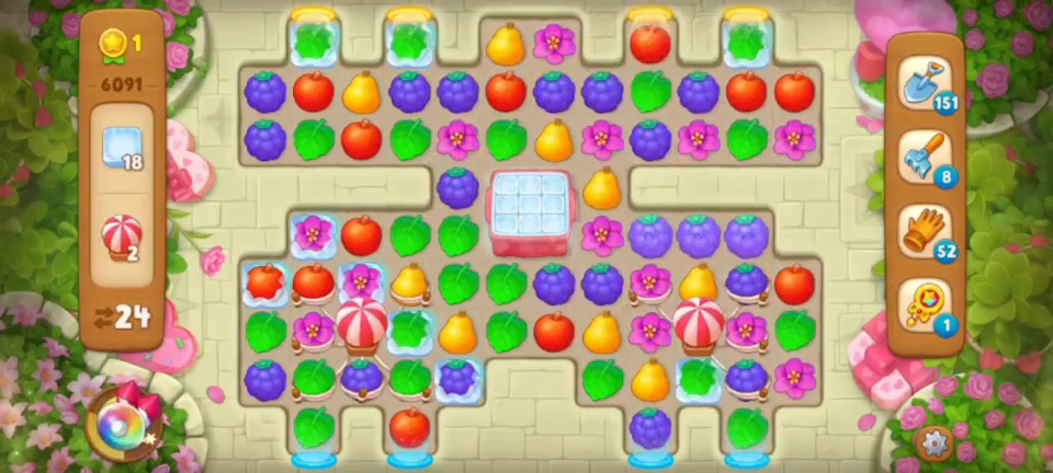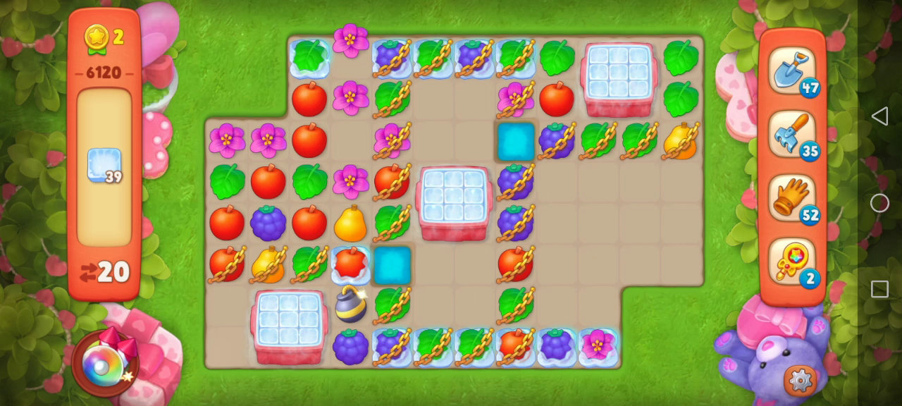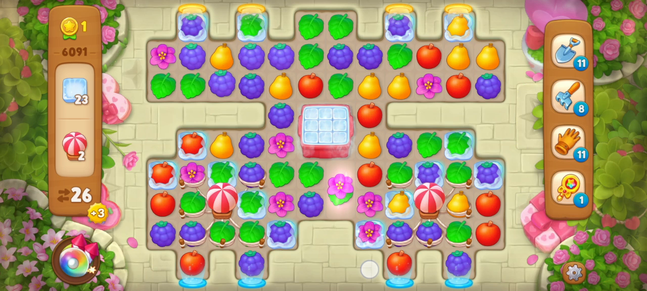 这一关先在冷却机旁边消除,把冰块放出来,然后尽可能多的制造道具点燃后释放彩虹球,凑不到双彩,就看被热气球绑住的哪个元素最多就用彩虹弹消除哪一个。